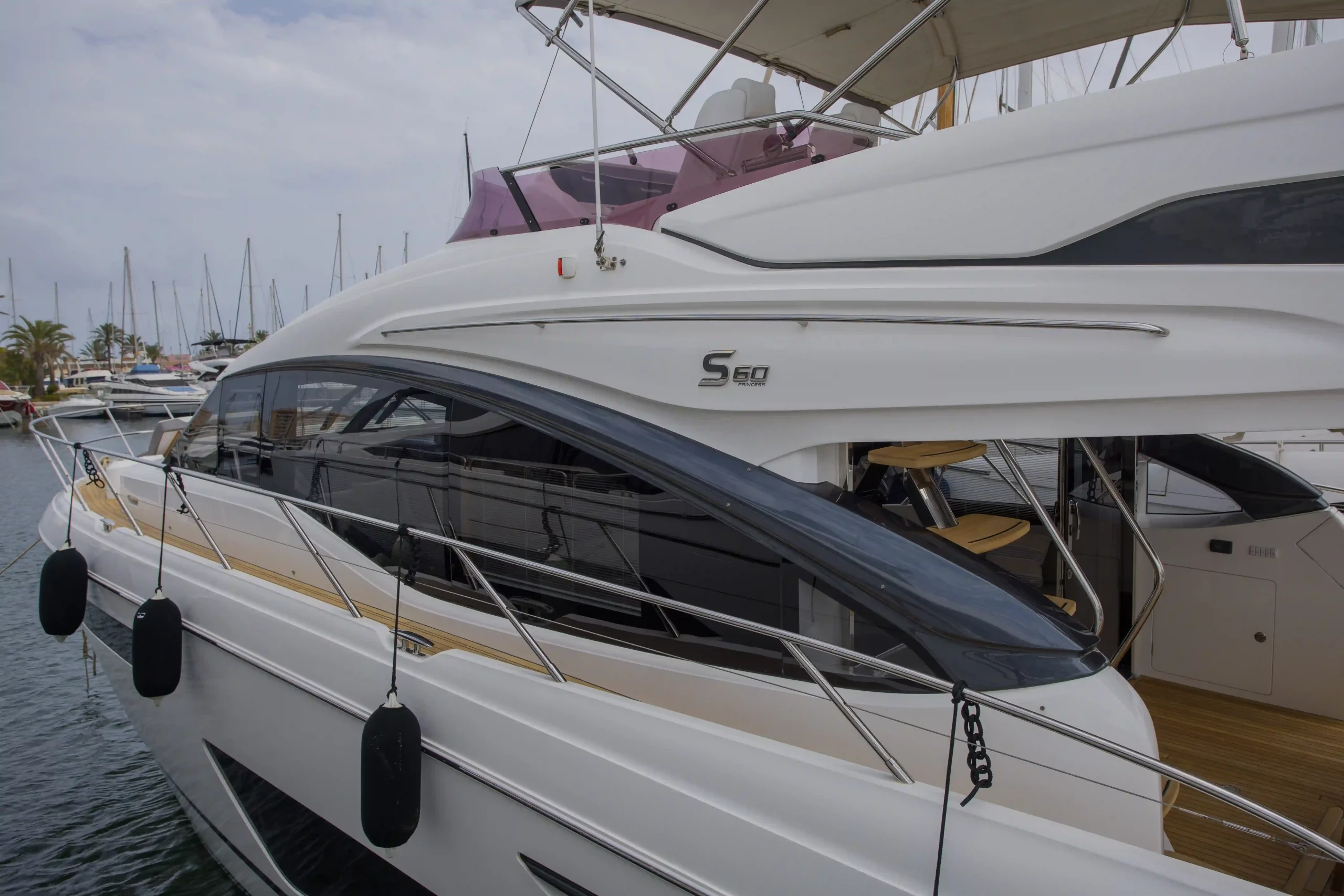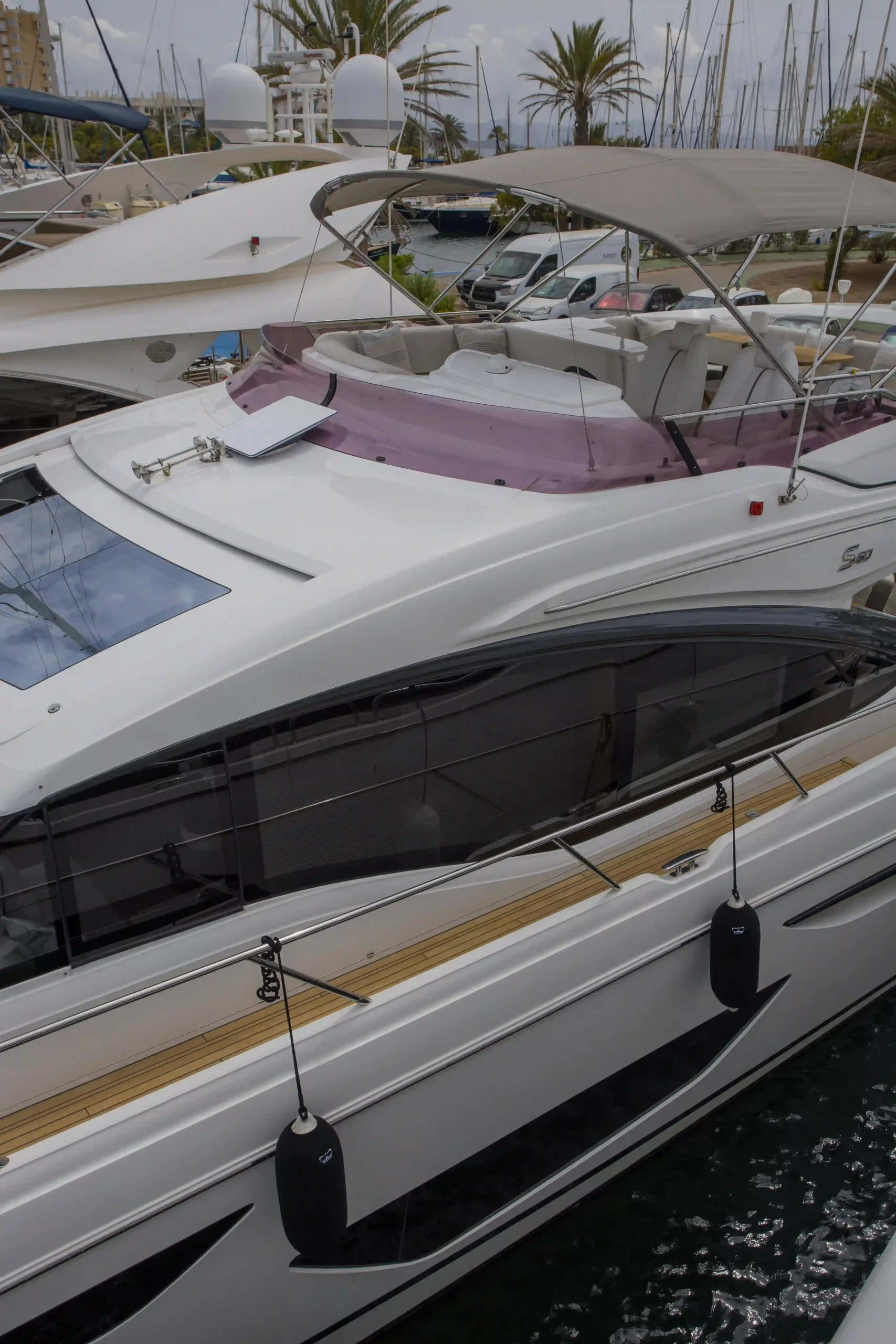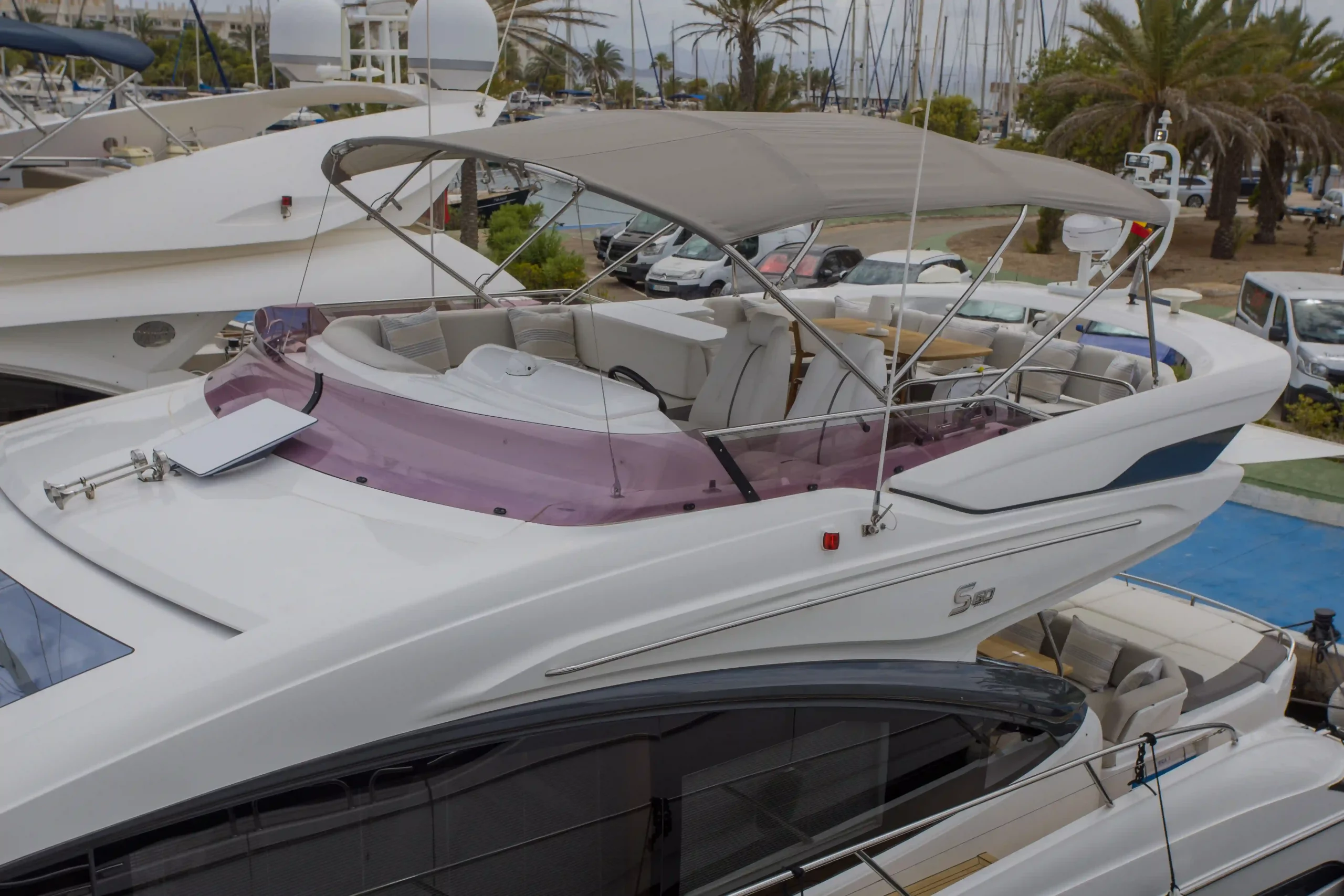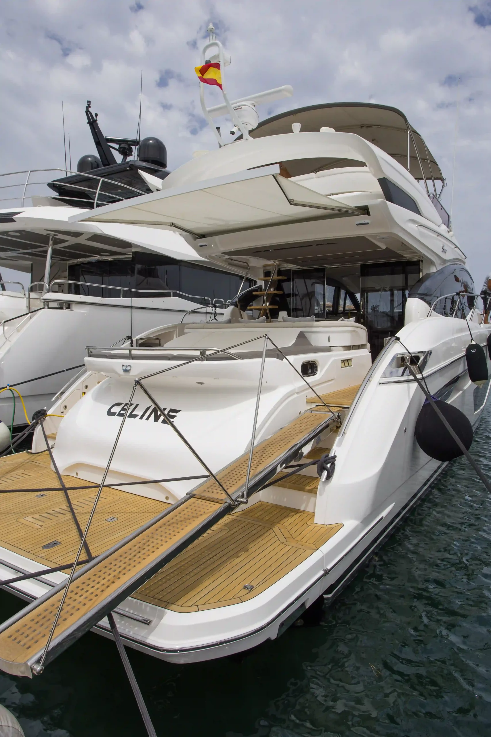 Espectacular Princess S60 del año 2018, con impuestos pagados en España y bandera española. Embarcación Full Equipo, equipada con: aire acondicionado, estabilizadora Seakeeper, generador, portalizadora, sistema de sonido Premium con Home Cinema Bose, bimini Fly hidráulico, sistema de navegación Raymarine, plataforma hi-low, garaje para auxiliar de hasta 3,5 metros e internet Starlink vía satélite.