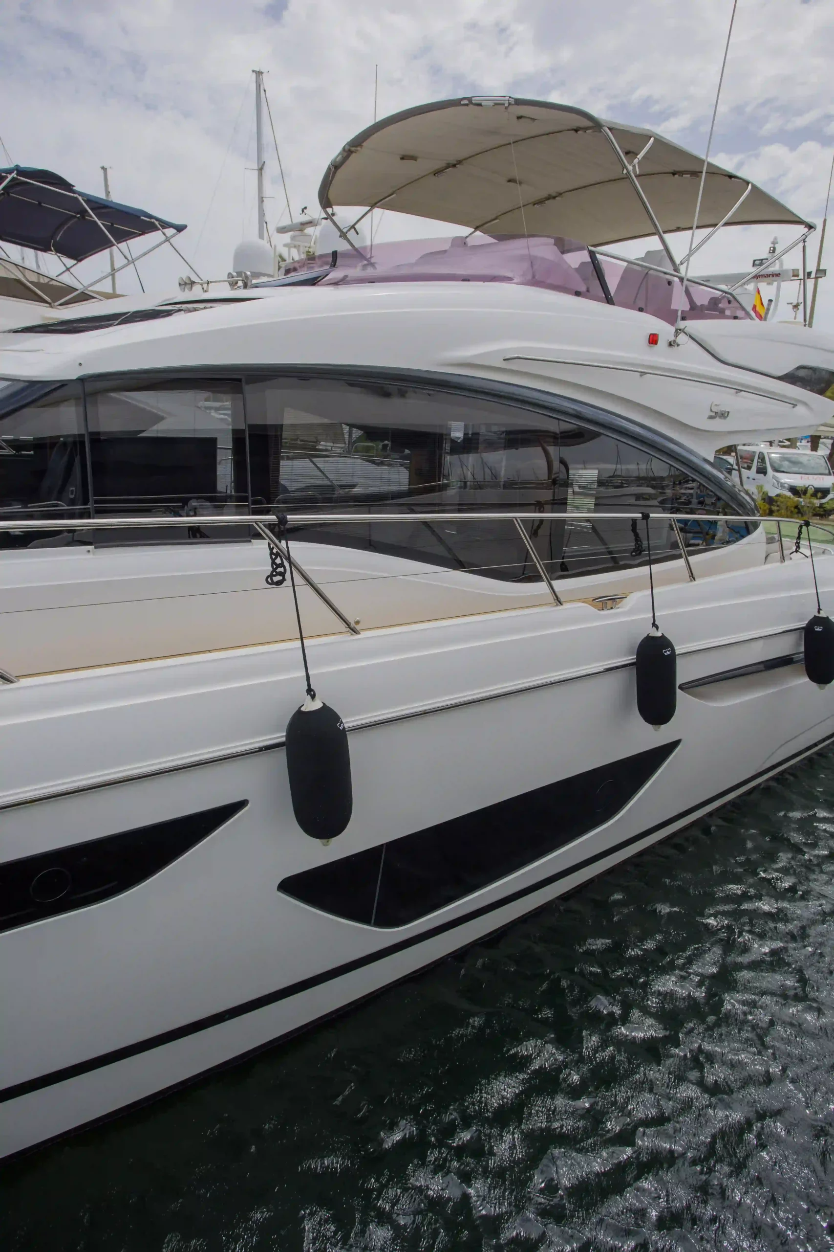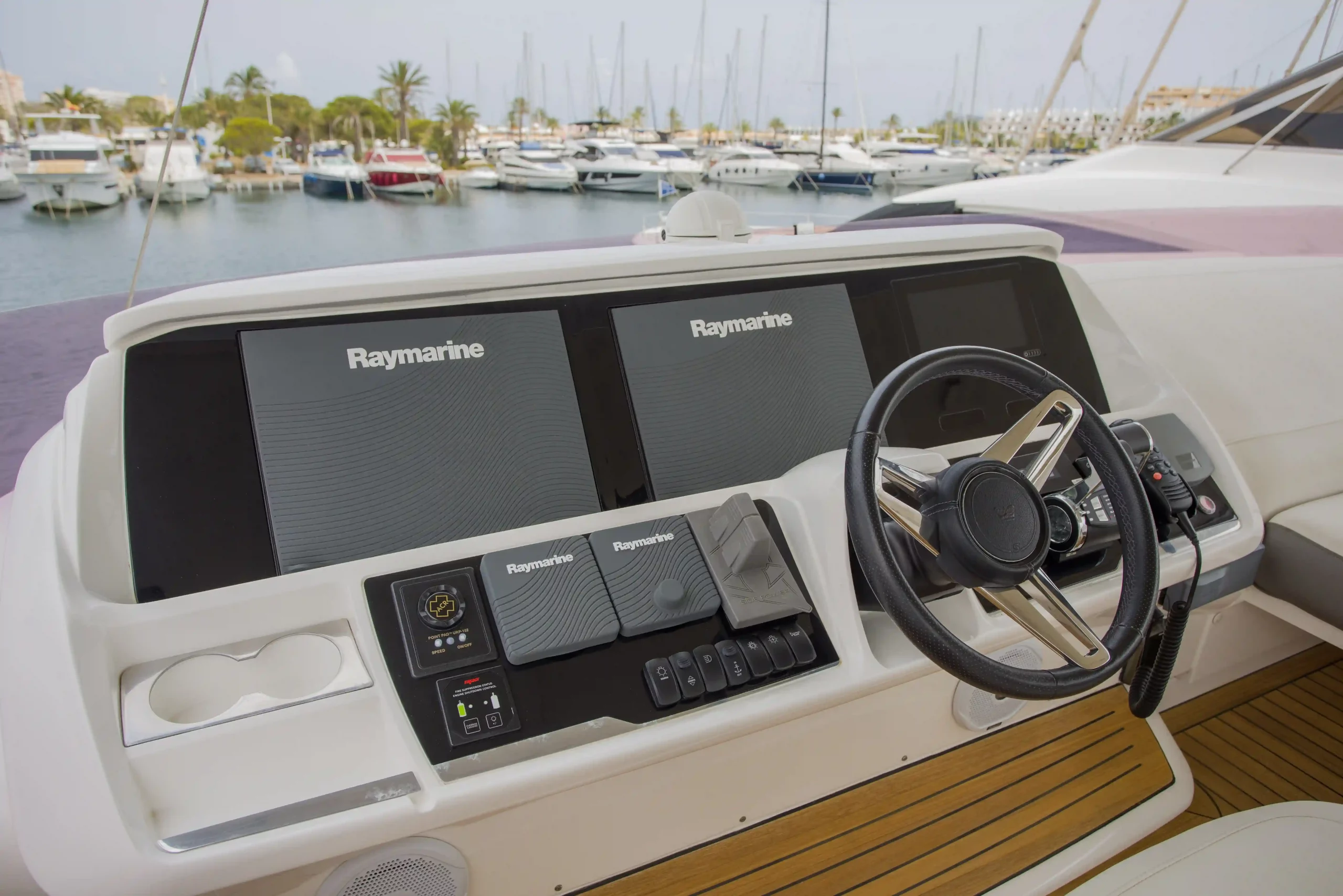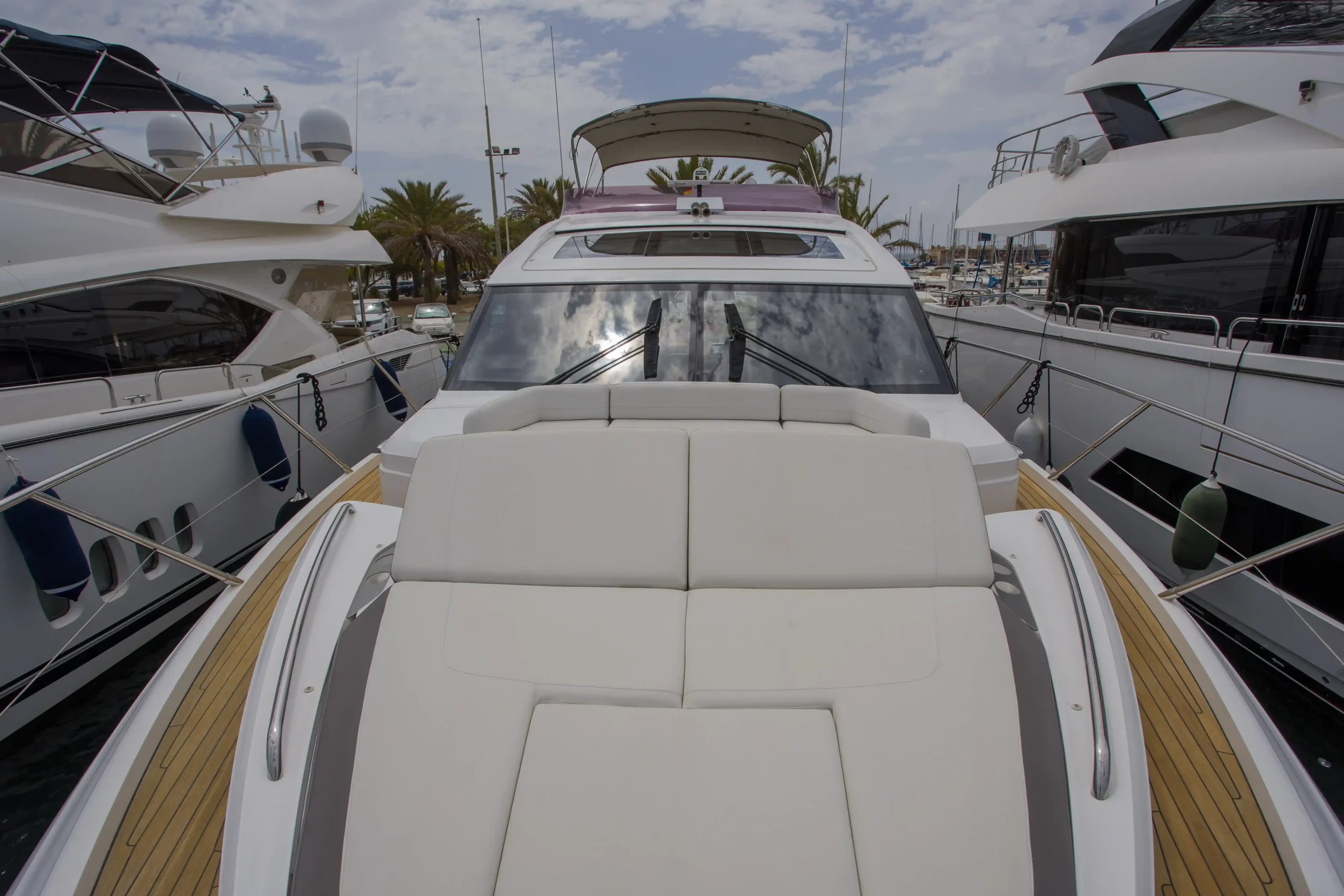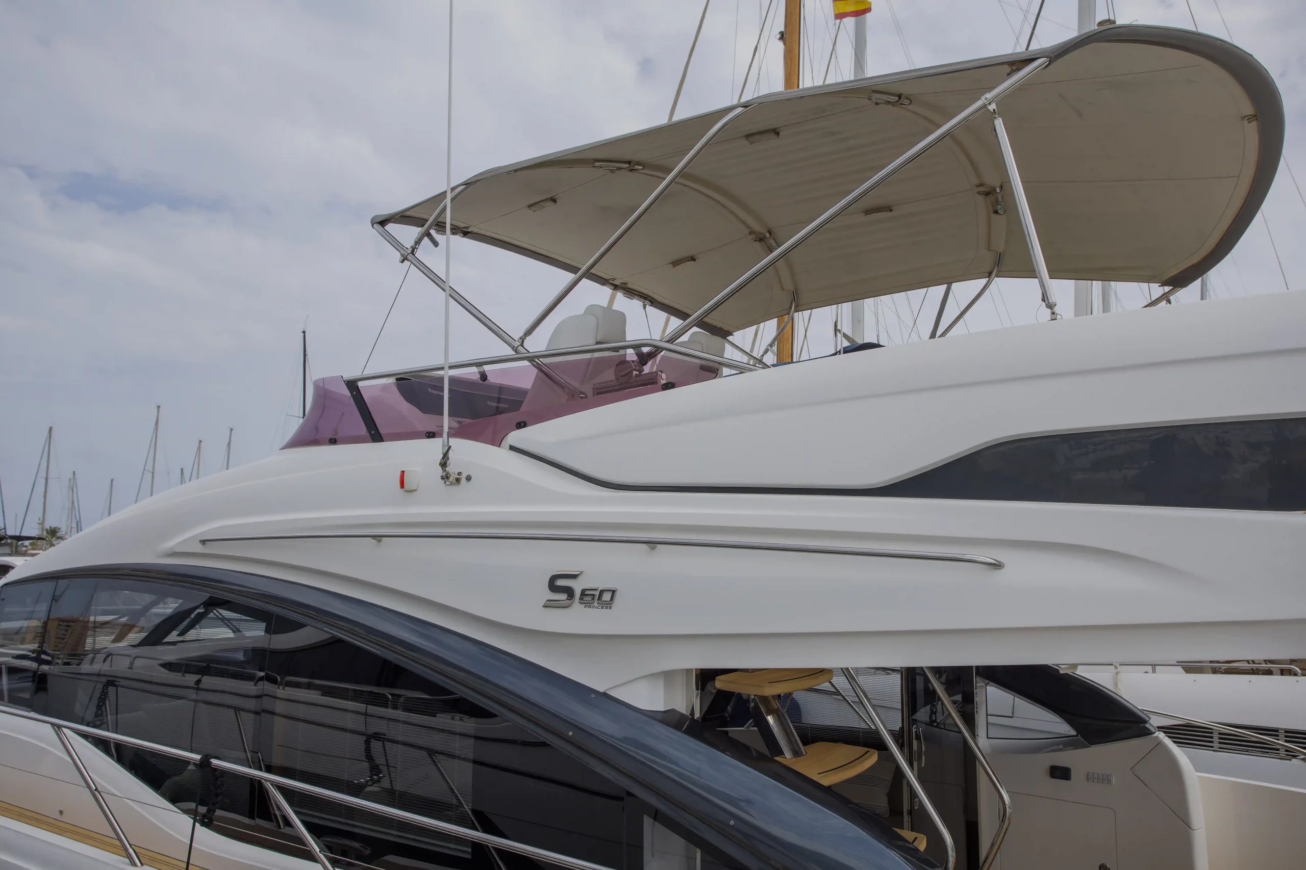 Espectacular Princess S60 del año 2018, con impuestos pagados en España y bandera española. Embarcación Full Equipo, equipada con: aire acondicionado, estabilizadora Seakeeper, generador, portalizadora, sistema de sonido Premium con Home Cinema Bose, bimini Fly hidráulico, sistema de navegación Raymarine, plataforma hi-low, garaje para auxiliar de hasta 3,5 metros e internet Starlink vía satélite.