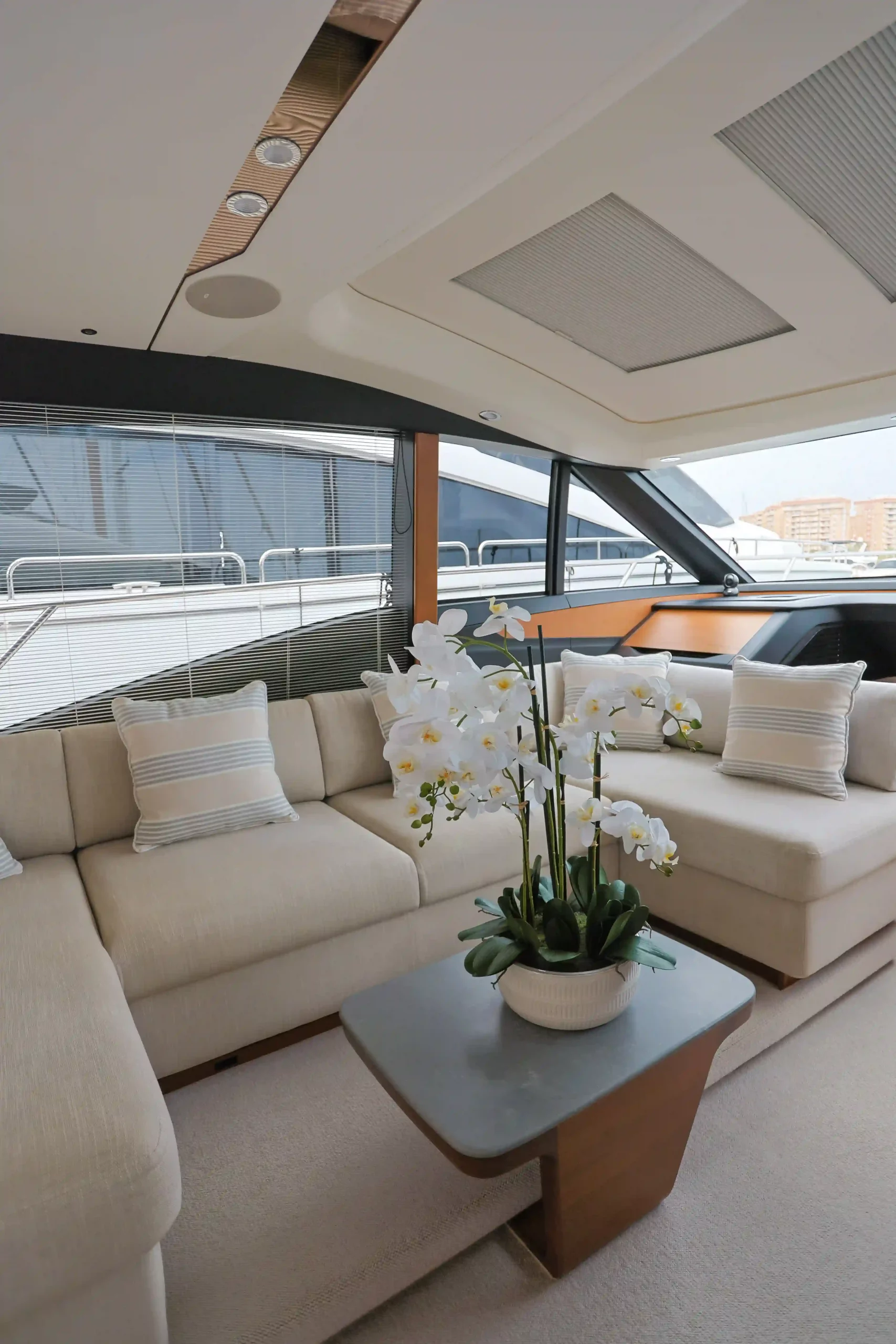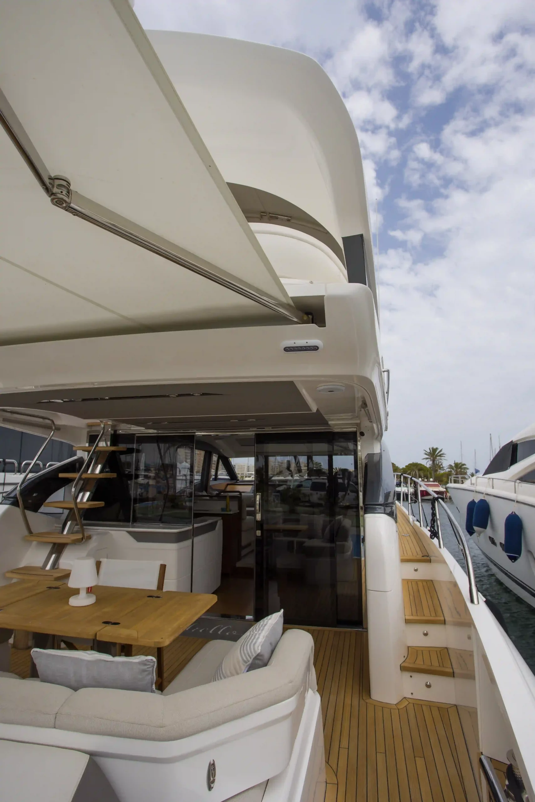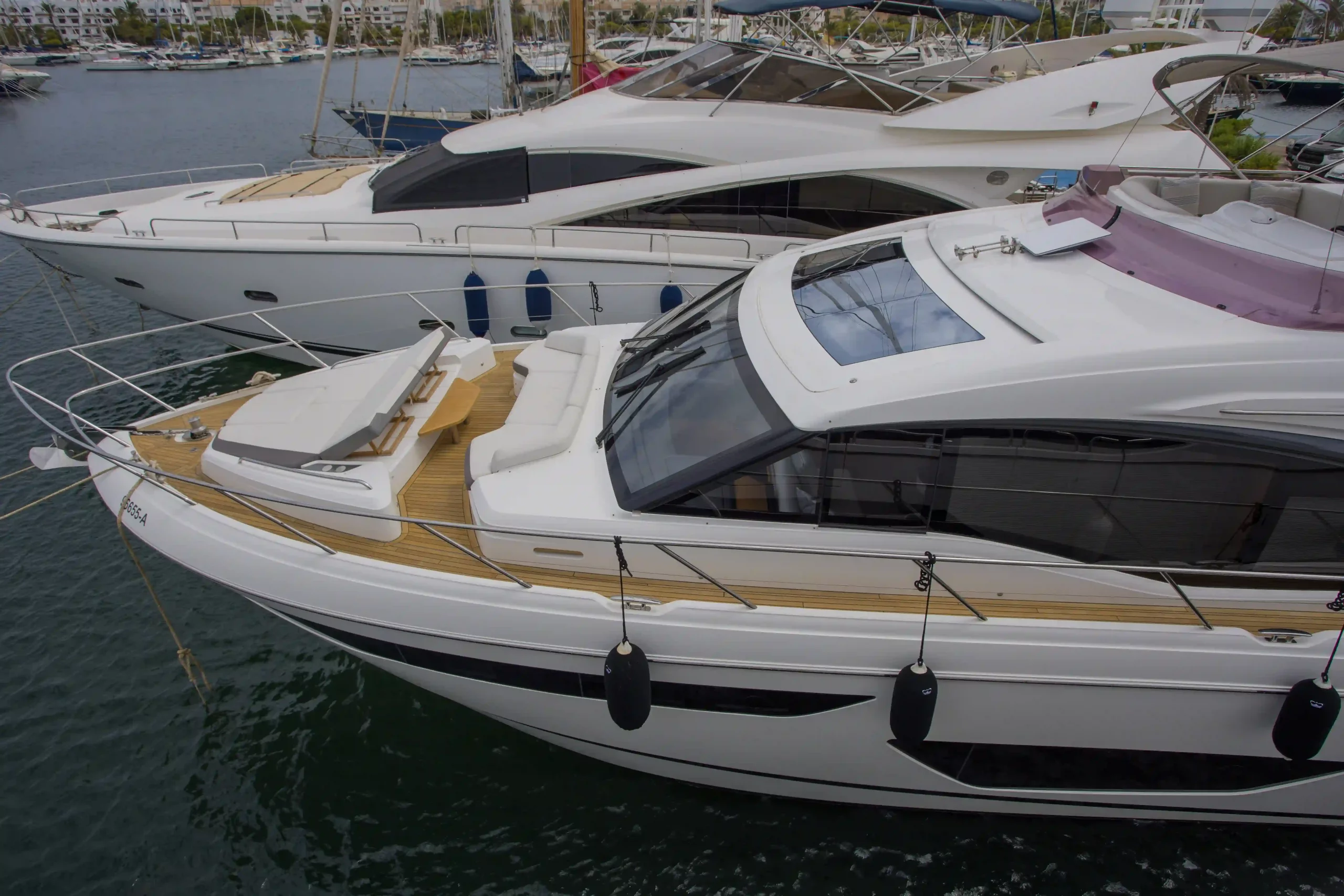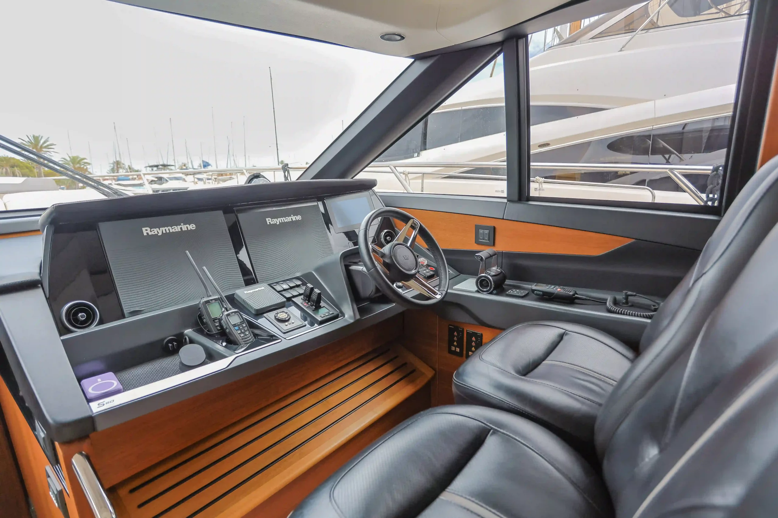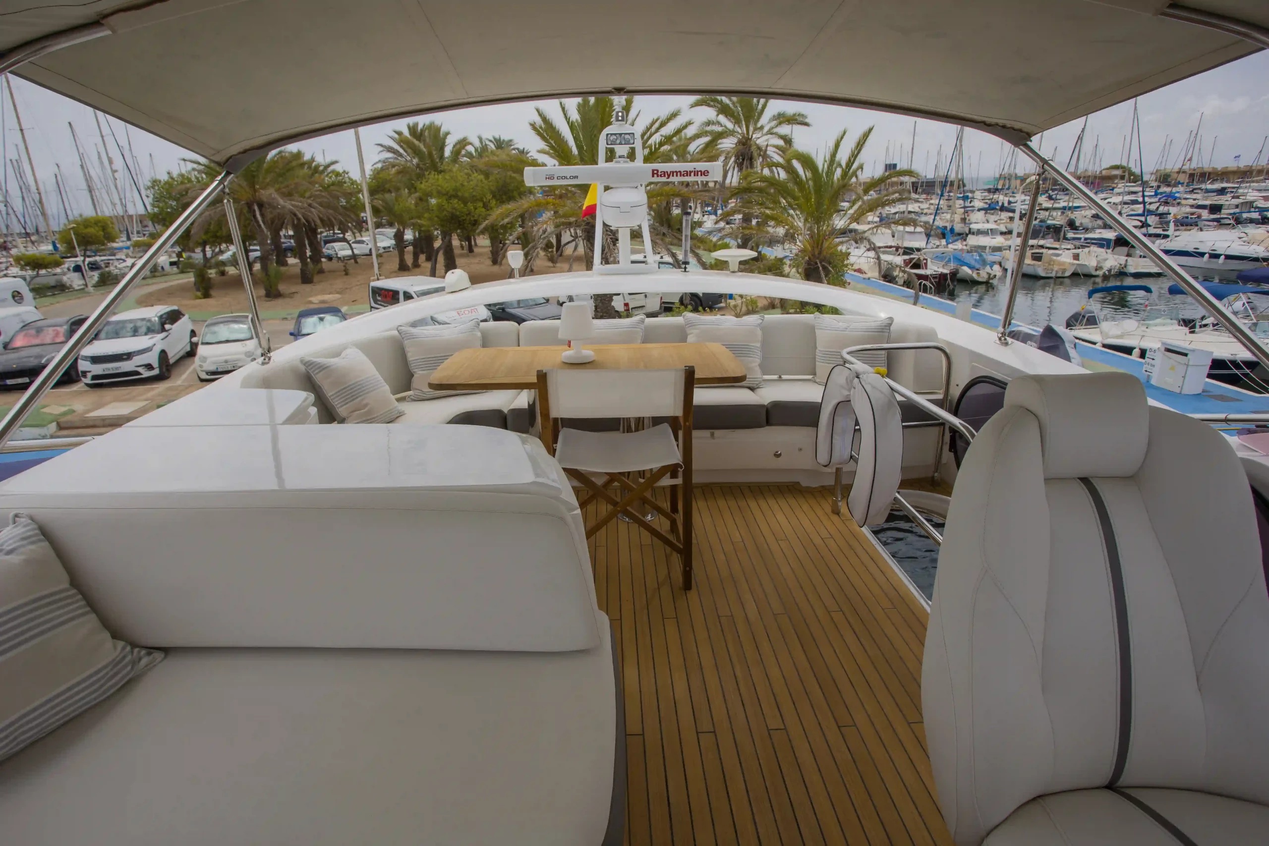 Espectacular Princess S60 del año 2018, con impuestos pagados en España y bandera española. Embarcación Full Equipo, equipada con: aire acondicionado, estabilizadora Seakeeper, generador, portalizadora, sistema de sonido Premium con Home Cinema Bose, bimini Fly hidráulico, sistema de navegación Raymarine, plataforma hi-low, garaje para auxiliar de hasta 3,5 metros e internet Starlink vía satélite.