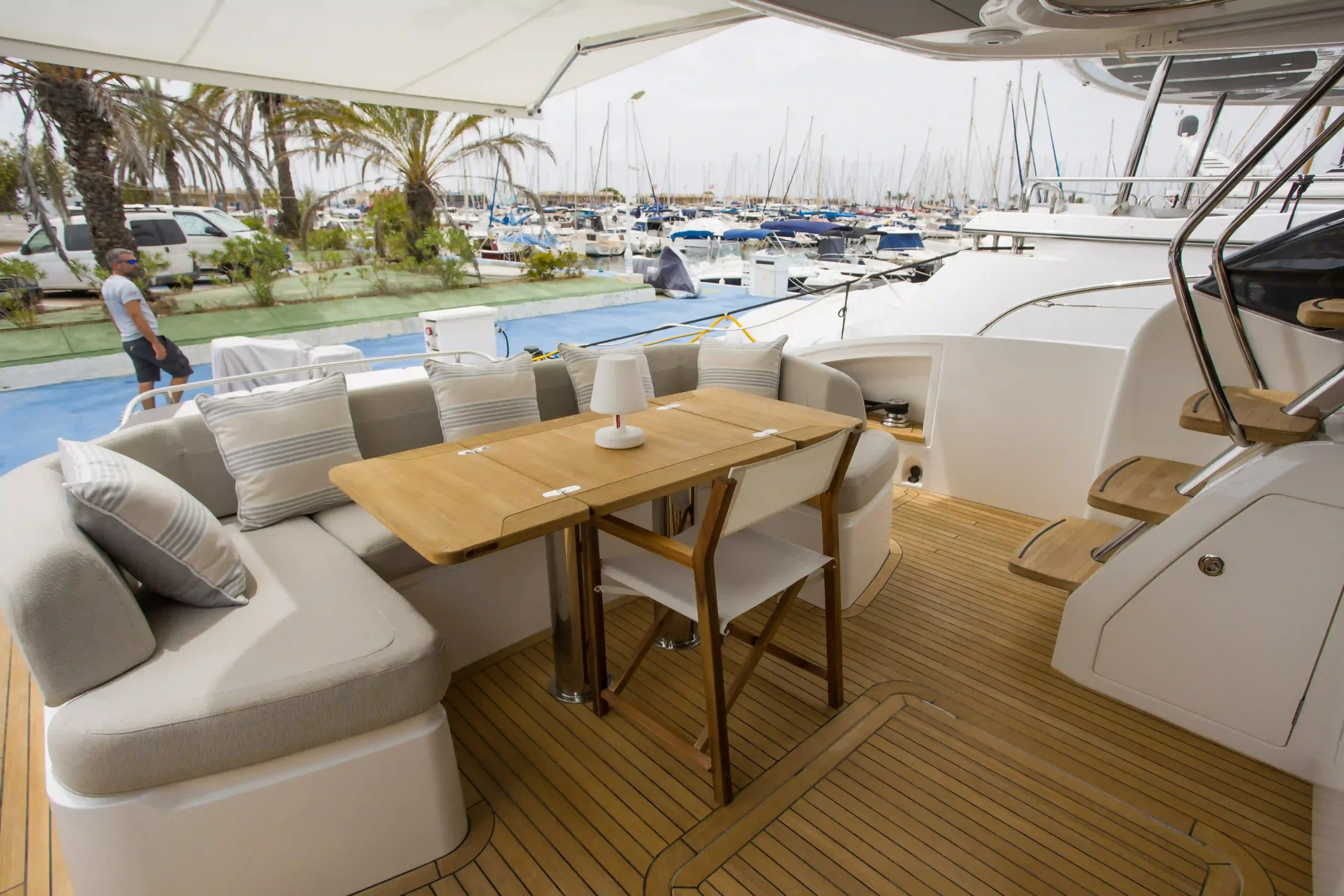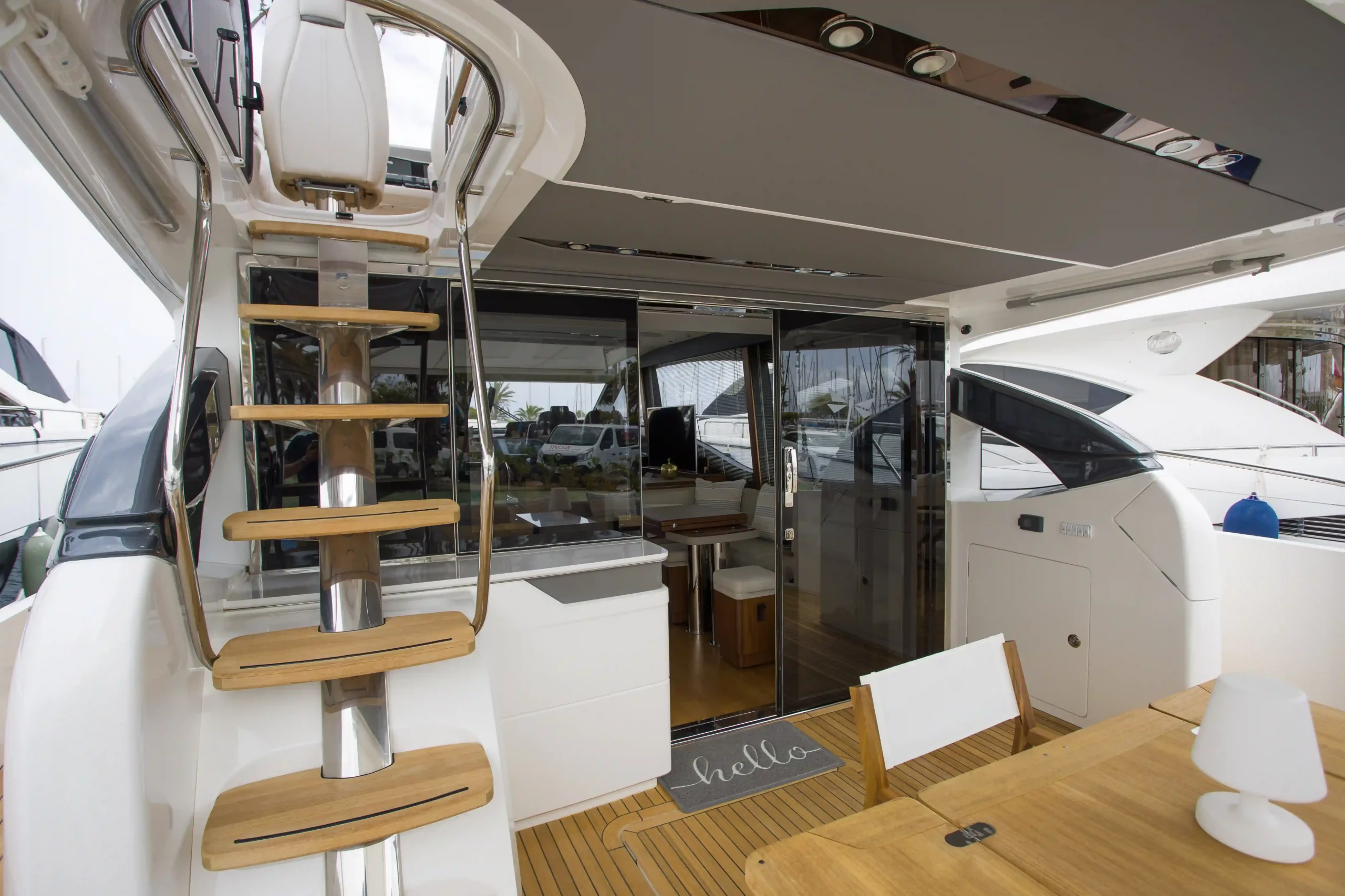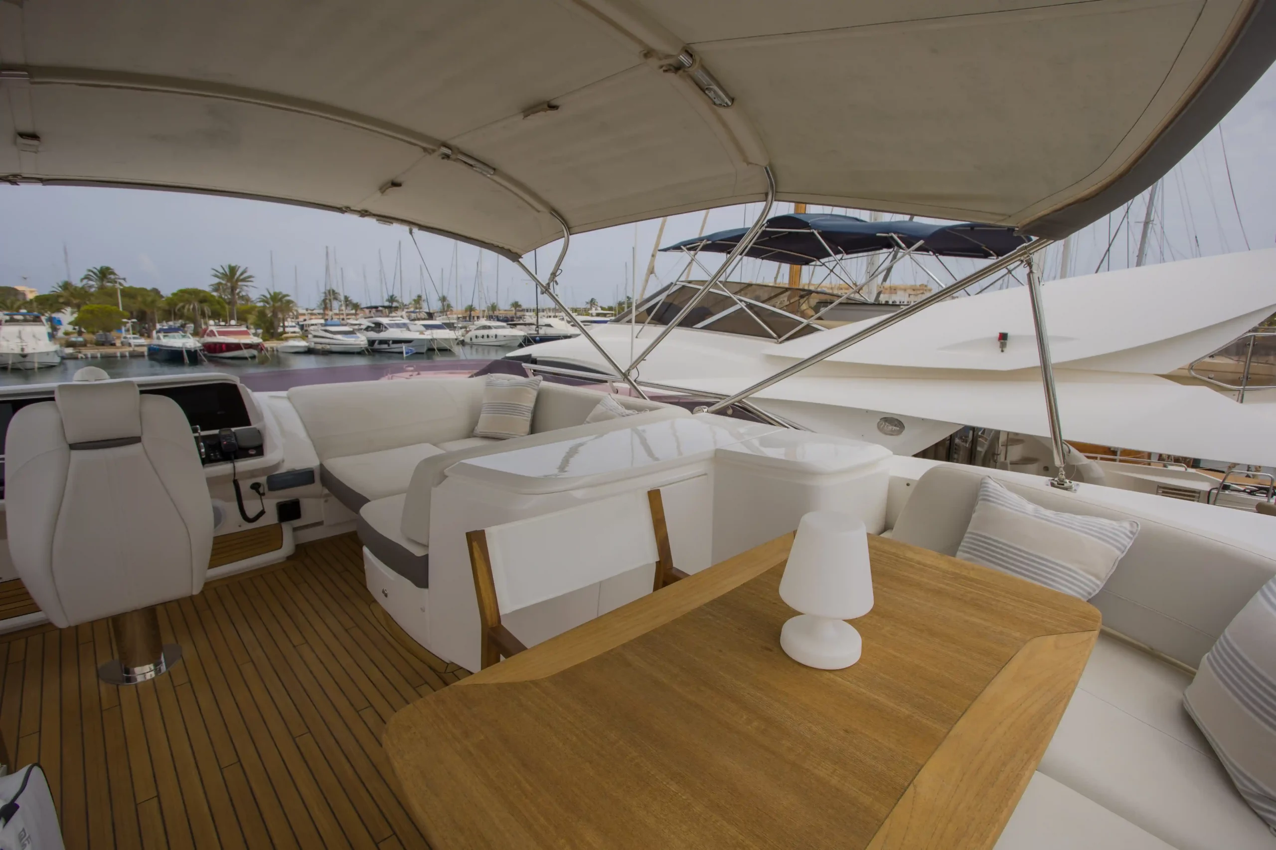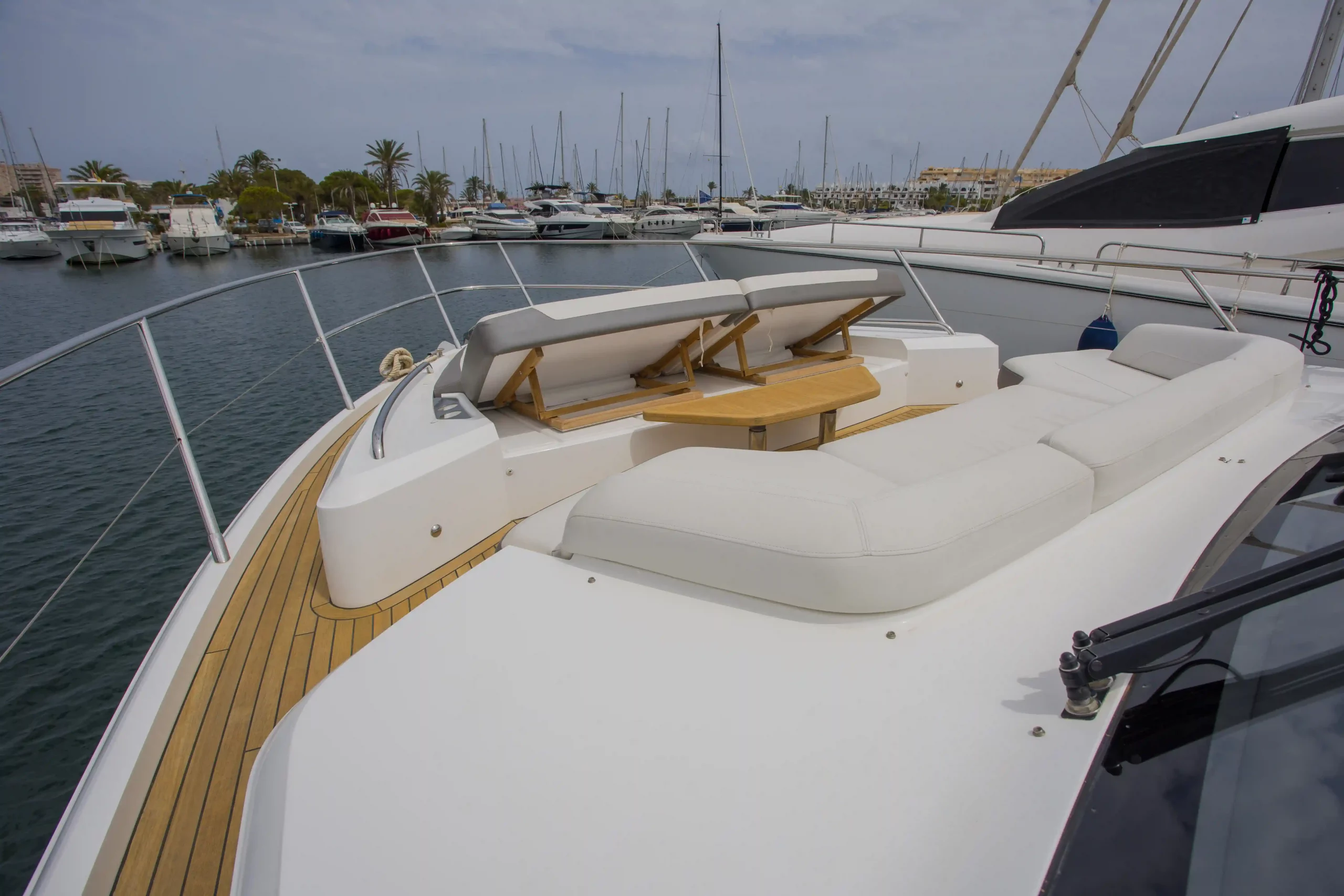 Espectacular Princess S60 del año 2018, con impuestos pagados en España y bandera española. Embarcación Full Equipo, equipada con: aire acondicionado, estabilizadora Seakeeper, generador, portalizadora, sistema de sonido Premium con Home Cinema Bose, bimini Fly hidráulico, sistema de navegación Raymarine, plataforma hi-low, garaje para auxiliar de hasta 3,5 metros e internet Starlink vía satélite.