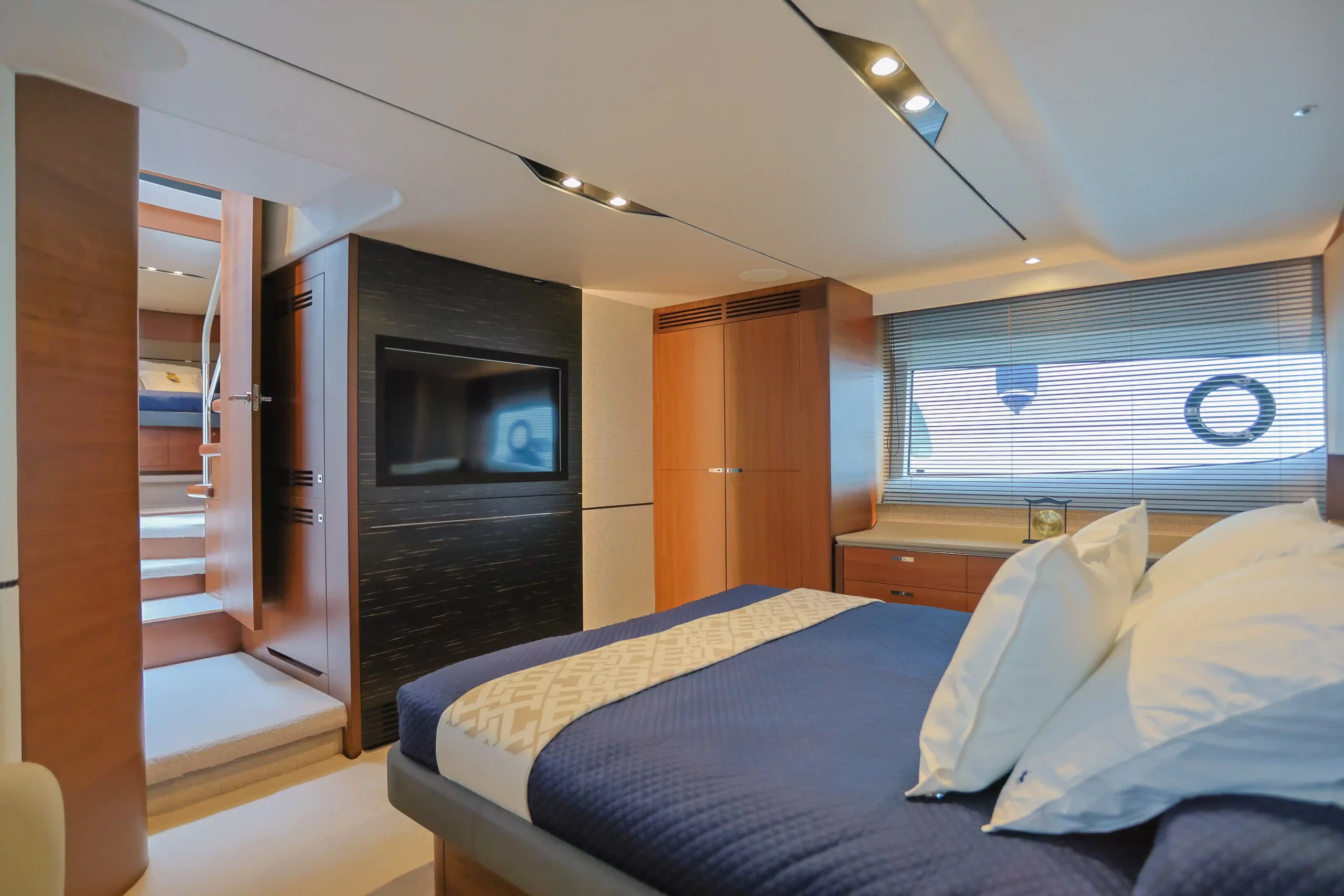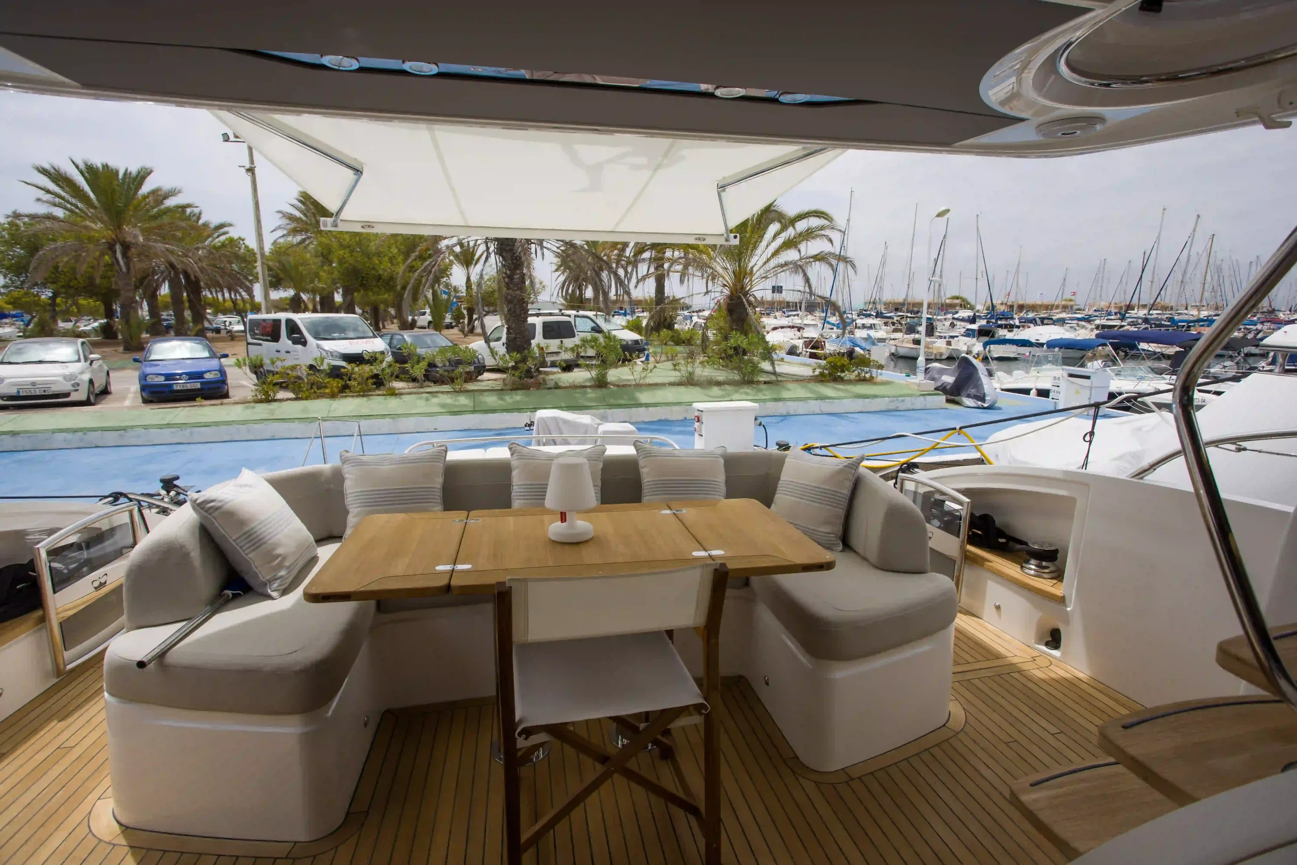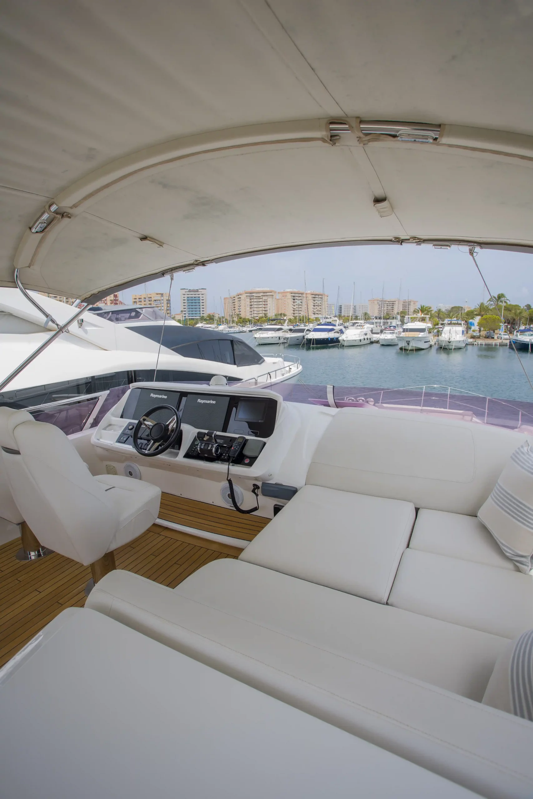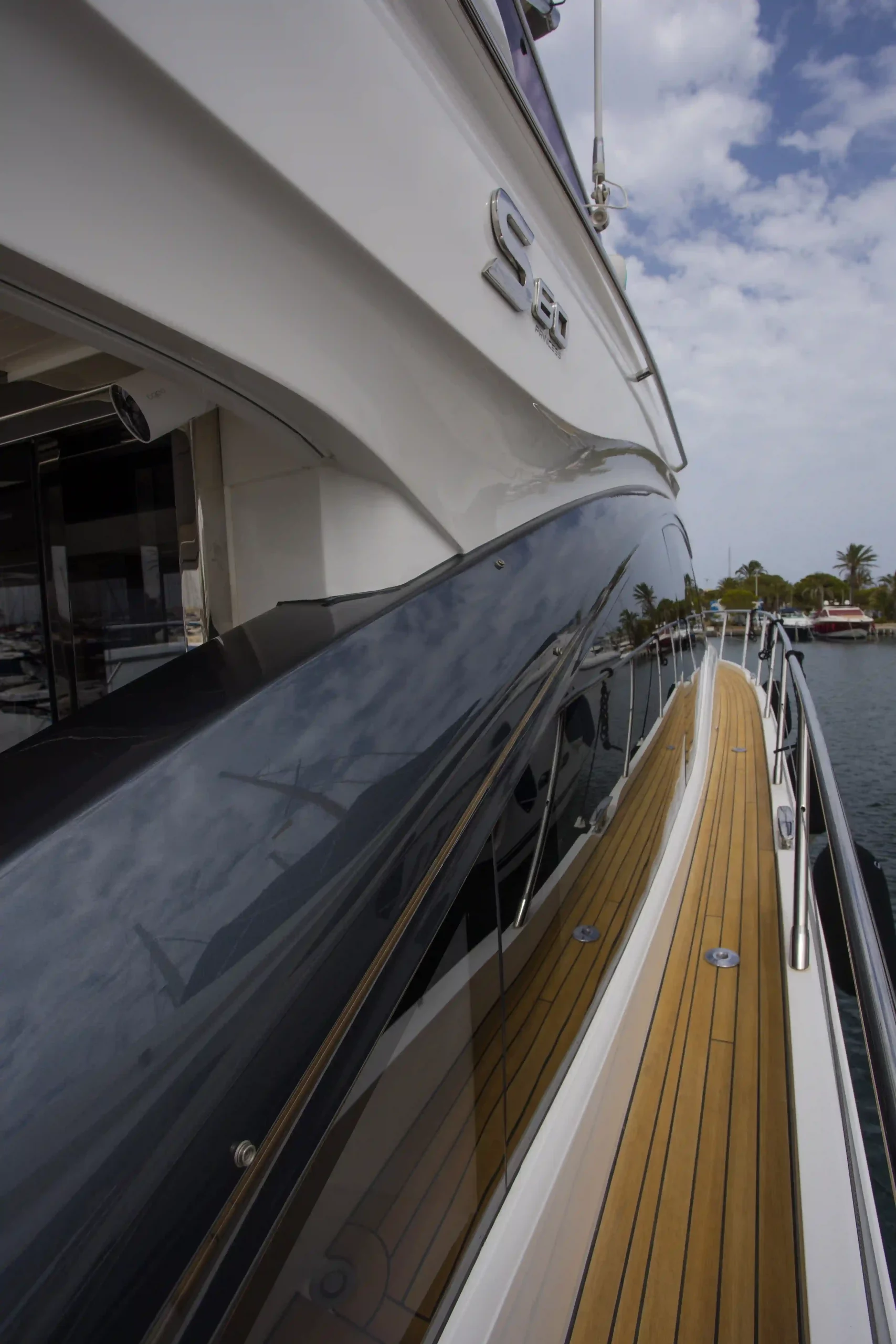 Espectacular Princess S60 del año 2018, con impuestos pagados en España y bandera española. Embarcación Full Equipo, equipada con: aire acondicionado, estabilizadora Seakeeper, generador, portalizadora, sistema de sonido Premium con Home Cinema Bose, bimini Fly hidráulico, sistema de navegación Raymarine, plataforma hi-low, garaje para auxiliar de hasta 3,5 metros e internet Starlink vía satélite.