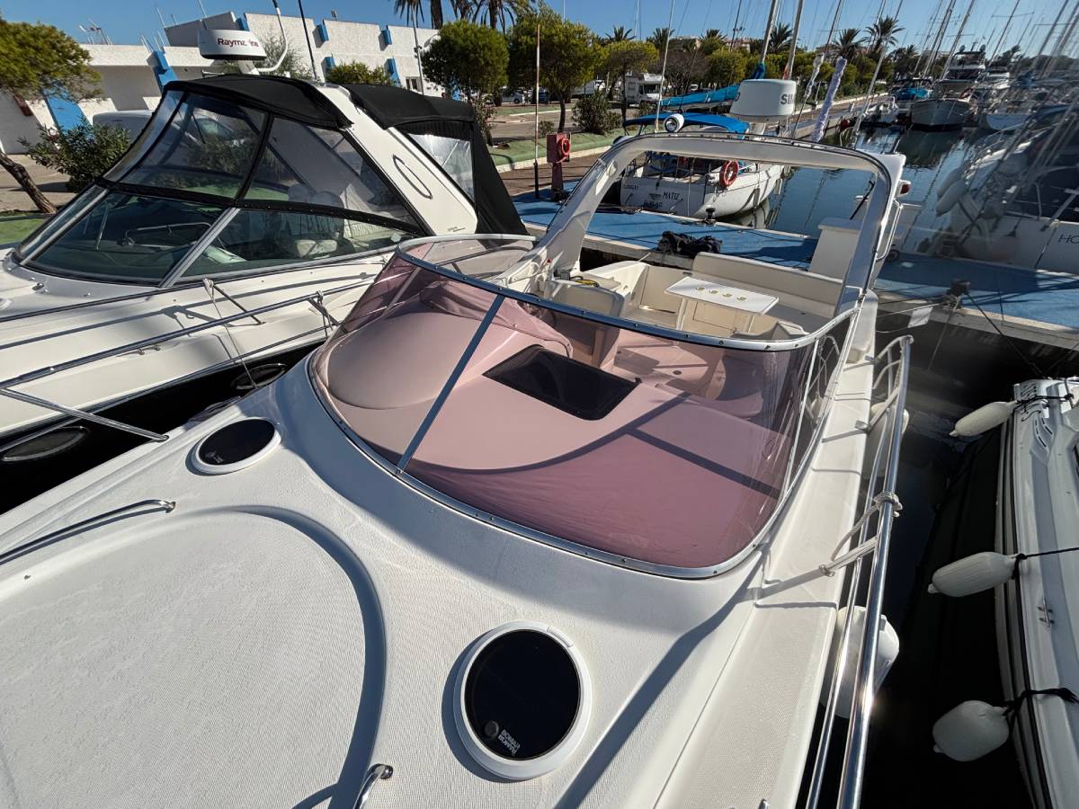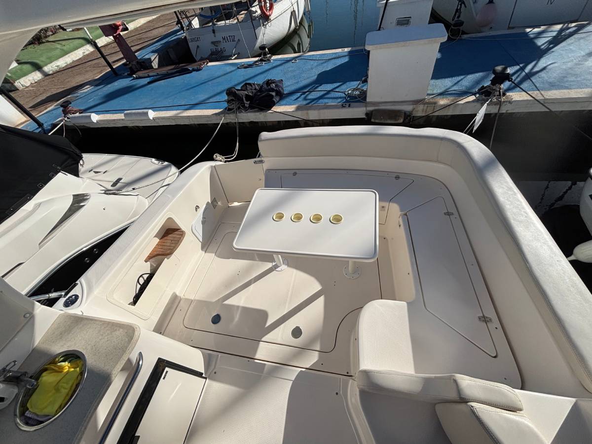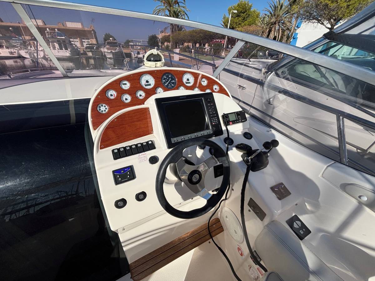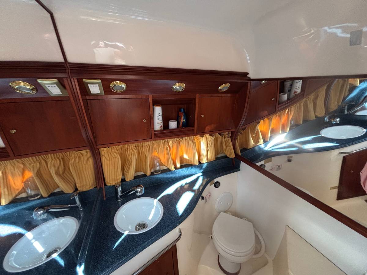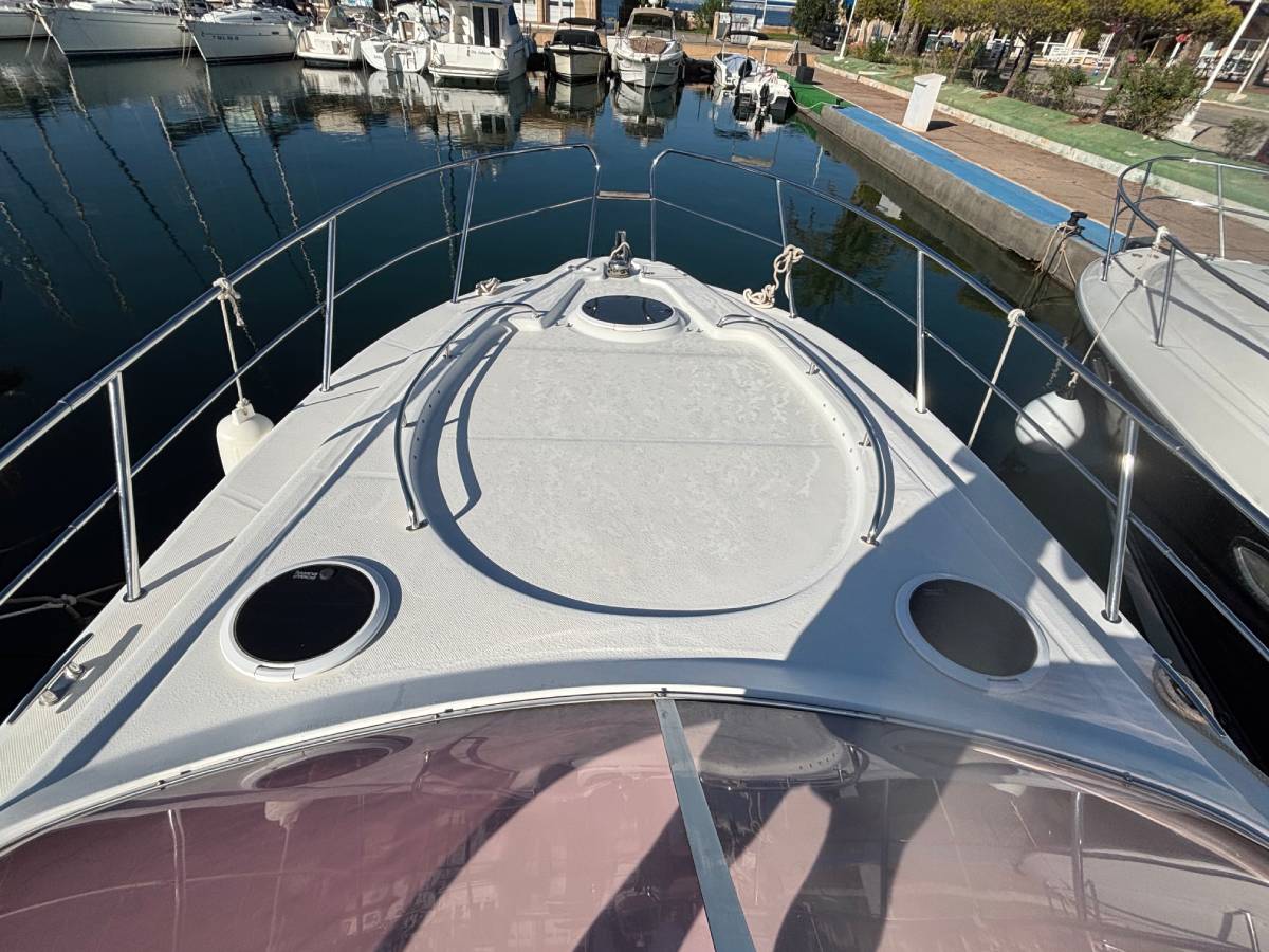 Esta embarcación cuenta con 1 camarote en popa, 1 baño completo con ducha y wc eléctrico, salón convertible en cama, cocina compuesta con fuegos de gas, frigorífico y microondas, frigorífico exterior y fregadero, ducha en bañera, aire acondicionado, electrónica completa simrad, hélice de proa, generador mastervolt 6kw, tratamiento de ósmosis 2023, 550 horas de motor. tapicería exterior en buen estado. solárium en proa. lonas camper y lona de fondeo. molinete eléctrico.