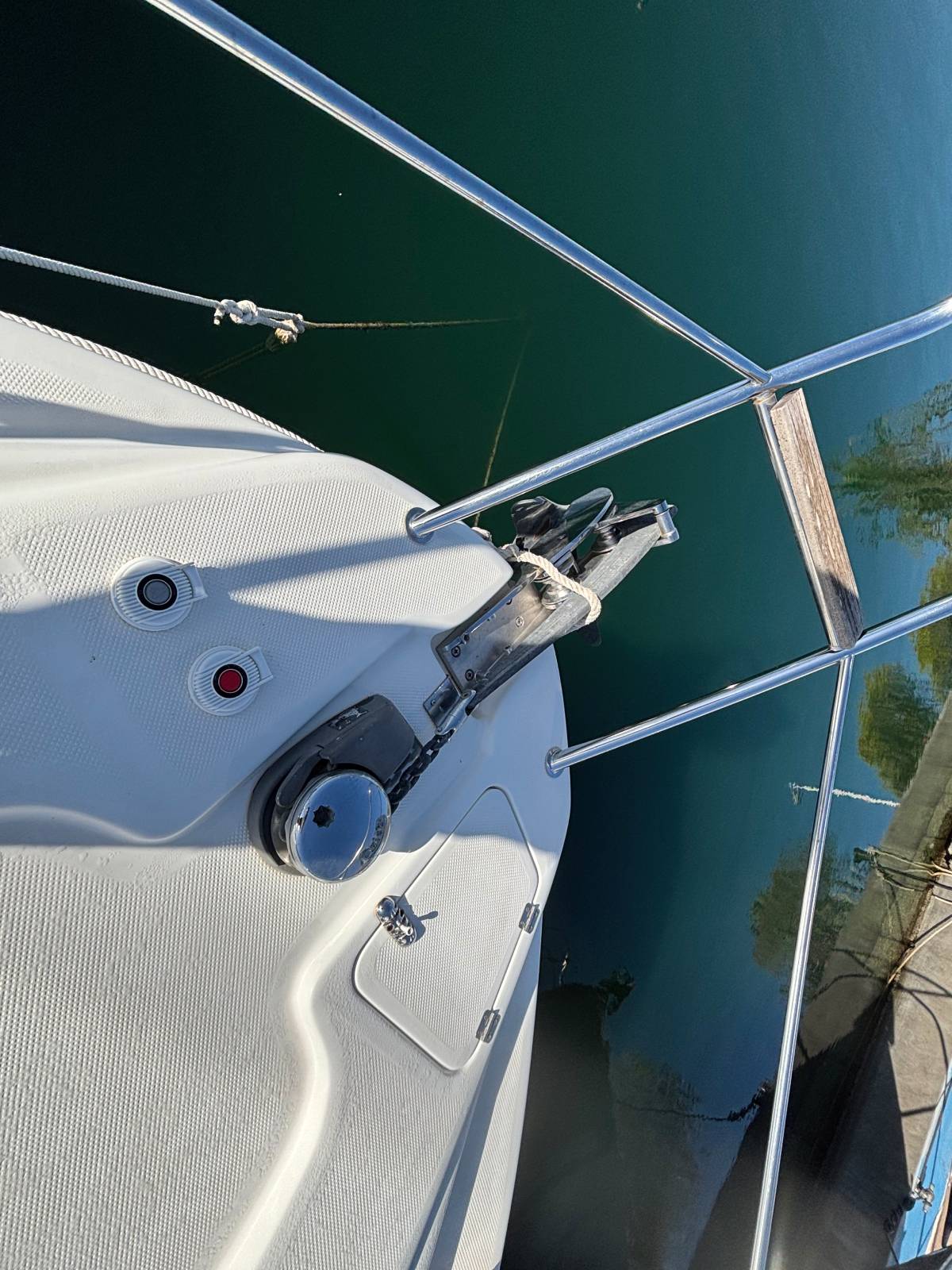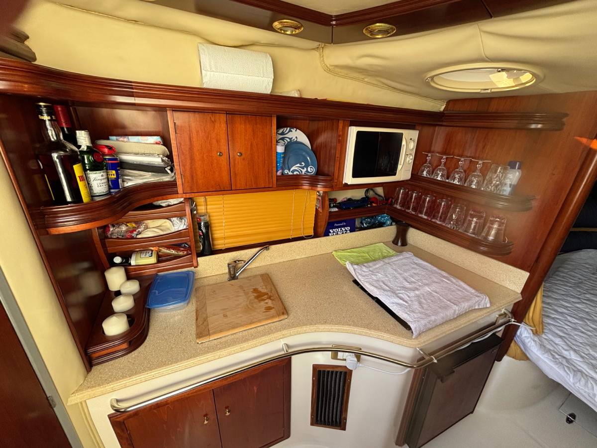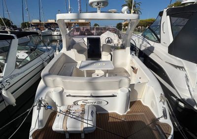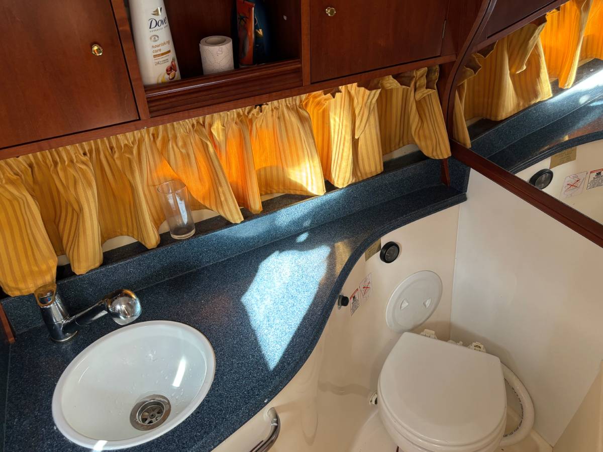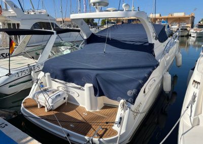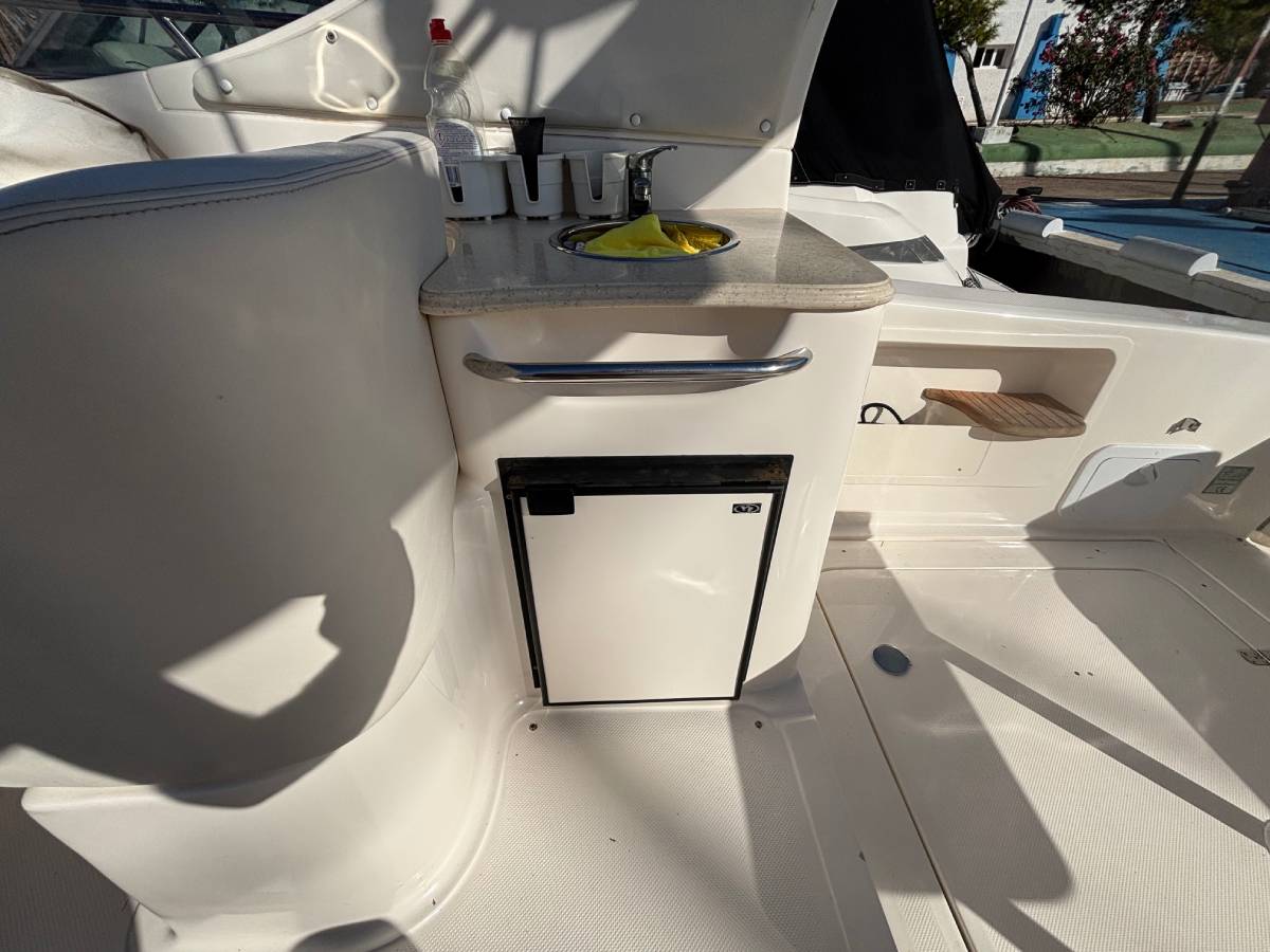 Esta embarcación cuenta con 1 camarote en popa, 1 baño completo con ducha y wc eléctrico, salón convertible en cama, cocina compuesta con fuegos de gas, frigorífico y microondas, frigorífico exterior y fregadero, ducha en bañera, aire acondicionado, electrónica completa simrad, hélice de proa, generador mastervolt 6kw, tratamiento de ósmosis 2023, 550 horas de motor. tapicería exterior en buen estado. solárium en proa. lonas camper y lona de fondeo. molinete eléctrico.